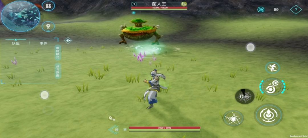 先利用回风的远距离优势把菌人王的霸体打没,到僵直状态;在打掉菌人王霸体之时,要防止高/矮菌人来打扰,不然就会自动锁定到它们身上如下:
