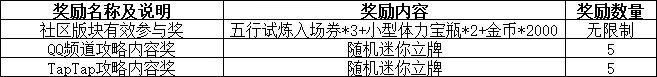 2、在QQ频道和TapTap发布五行试炼相关攻略有机会获得迷你立牌奖励