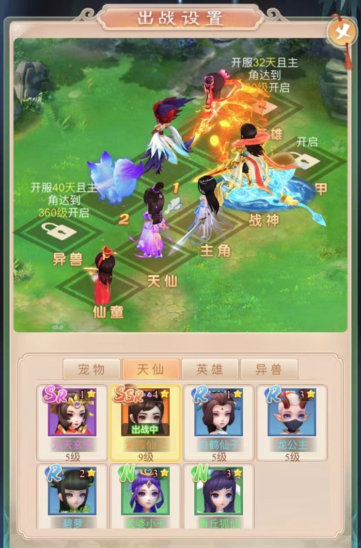 四个阵位天仙品质达到红色(SSSR)以上开启第5、6阵位,6阵位全部开启后激活觉醒技能——天仙守护。