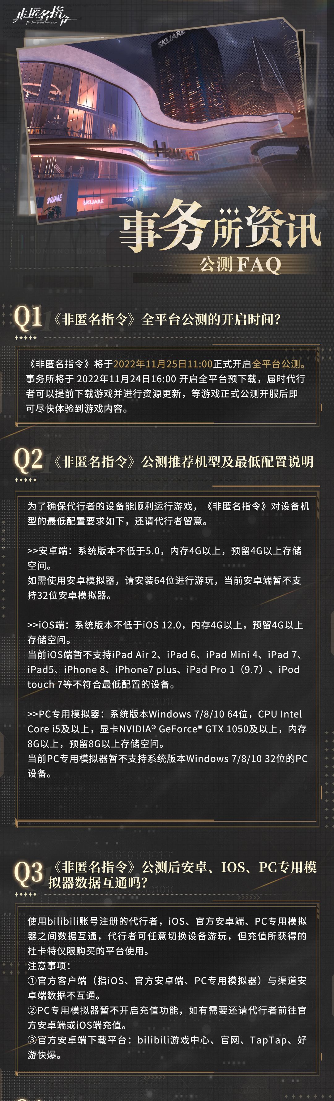 【非匿名指令】事务所资讯 公测FAQ已解锁!