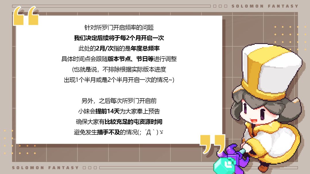 以后所罗门都会提前两周预告,以让勇者们做好充足的准备。