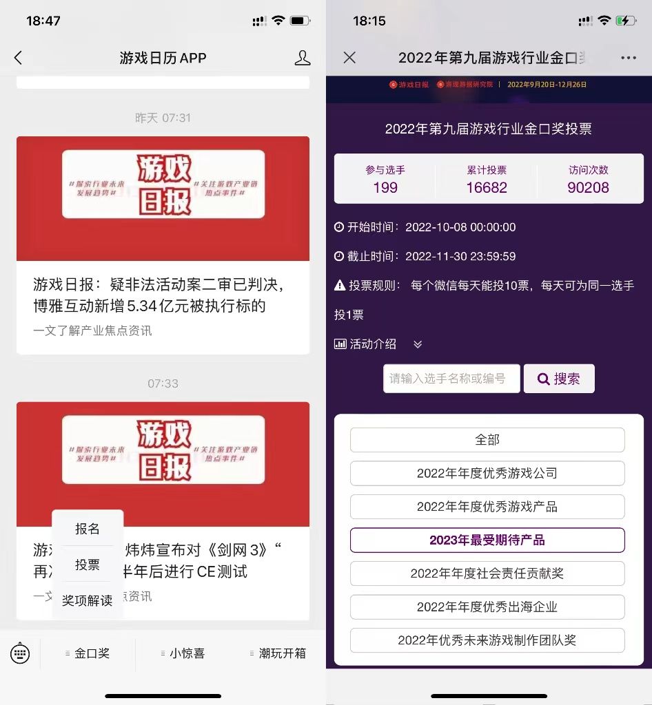【活动参与方法】用微信关注“游戏日历APP”公众号,进入公众号后点击金口奖选择投票。在投票界面选择【2023年最受期待产品】,找到《战火与永恒》进行投票就可以啦!每人每天都可投一票哦~