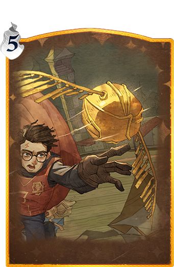 召唤一只高速移动的金色飞贼,金色飞贼会消耗生命值并在场内随机移动。每次移动为玩家提供1张移动卡和1点魔力值回复。金色飞贼生命值低于50%时可以被己方玩家抓取,抓取后立刻获得3张移动卡和1点魔力值。
