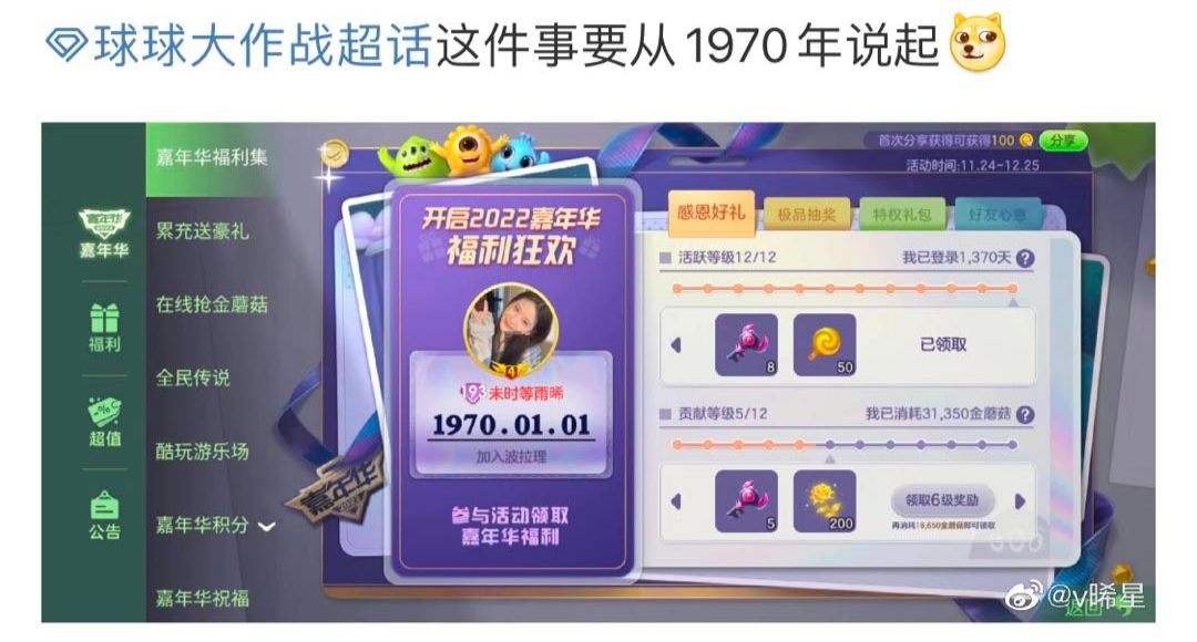 快上线打开你的嘉年华福利集,看看你的“球龄”是多少,资历越老福利越多哟~~~塔坦老祖为了给大家多送福利也是拼了,怎么写了个1970年,俺们波拉哩2015年才和球宝们建立联系呀!球宝们快来留言说说你的“球龄”是多少吧!