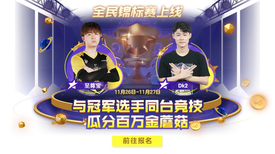 这可是一场穿越时空的对决!当年没能来到2016嘉年华现场的球宝们快来报名呀,11月27日挑战传奇老将Dk2赢冠军光环和海量金蘑菇!比赛开始点击上图界面Dk2头像就可以前往观赛,没有报名的球宝也要来加油助威呀!