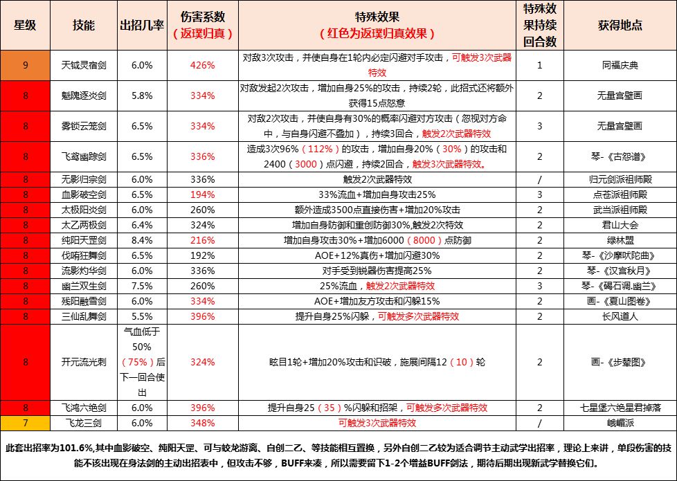 1、主动剑法(身法剑)推荐: