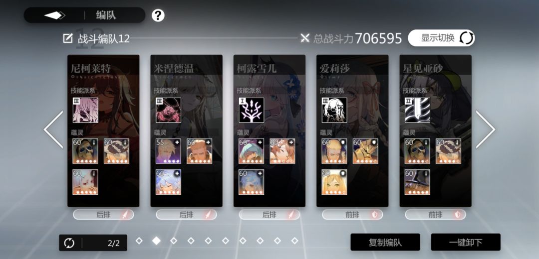 这套配置有两个站位,一个是圣拳给王女,另一个是给吸血鬼,给王女的话会稳定一点,给吸血鬼上限会高一点,但输出回合要凹1/2,我用的是后者,但比较非,这把只打了1200W,一般能到1250W吧。