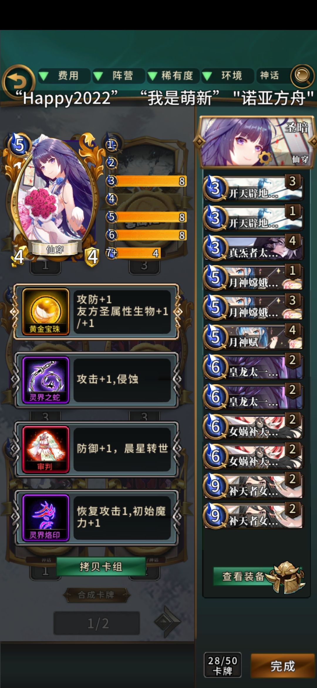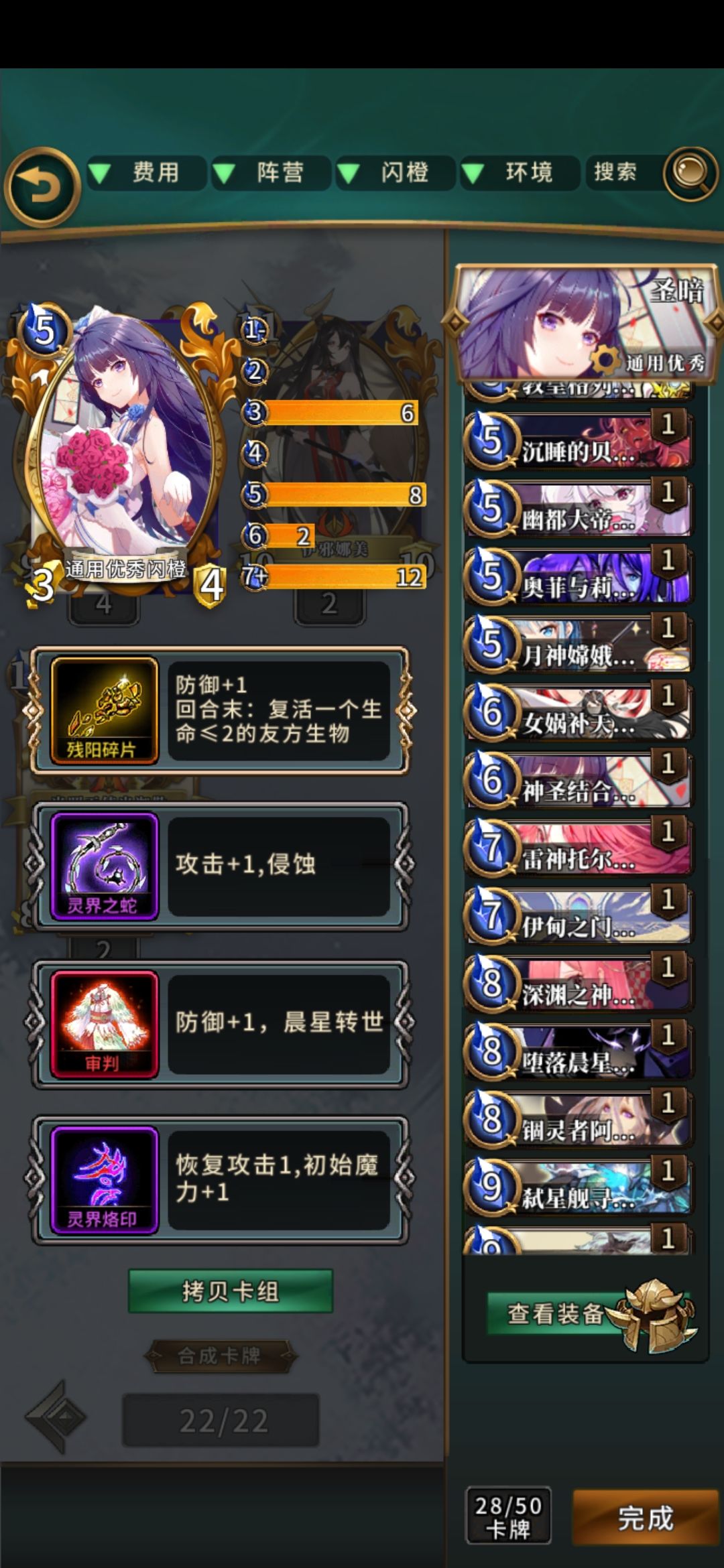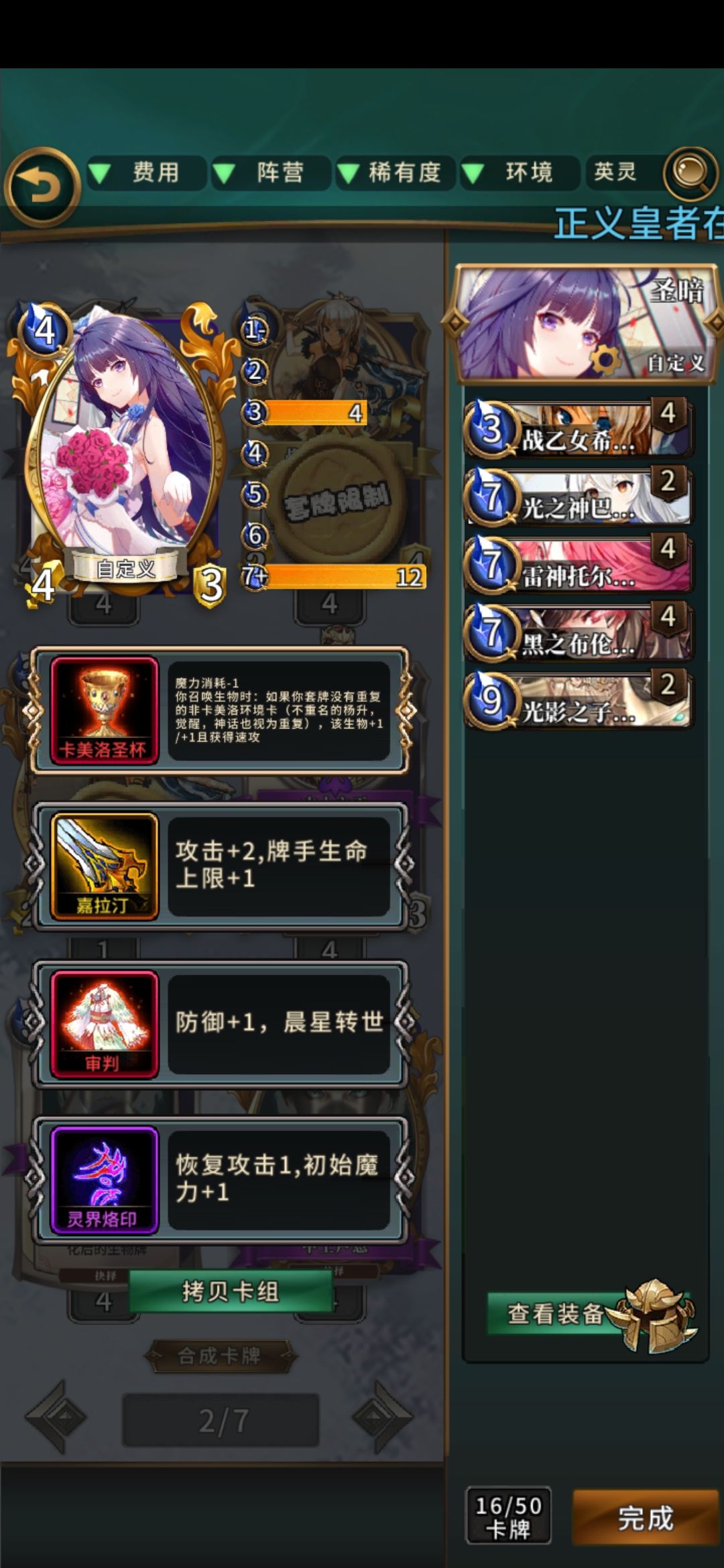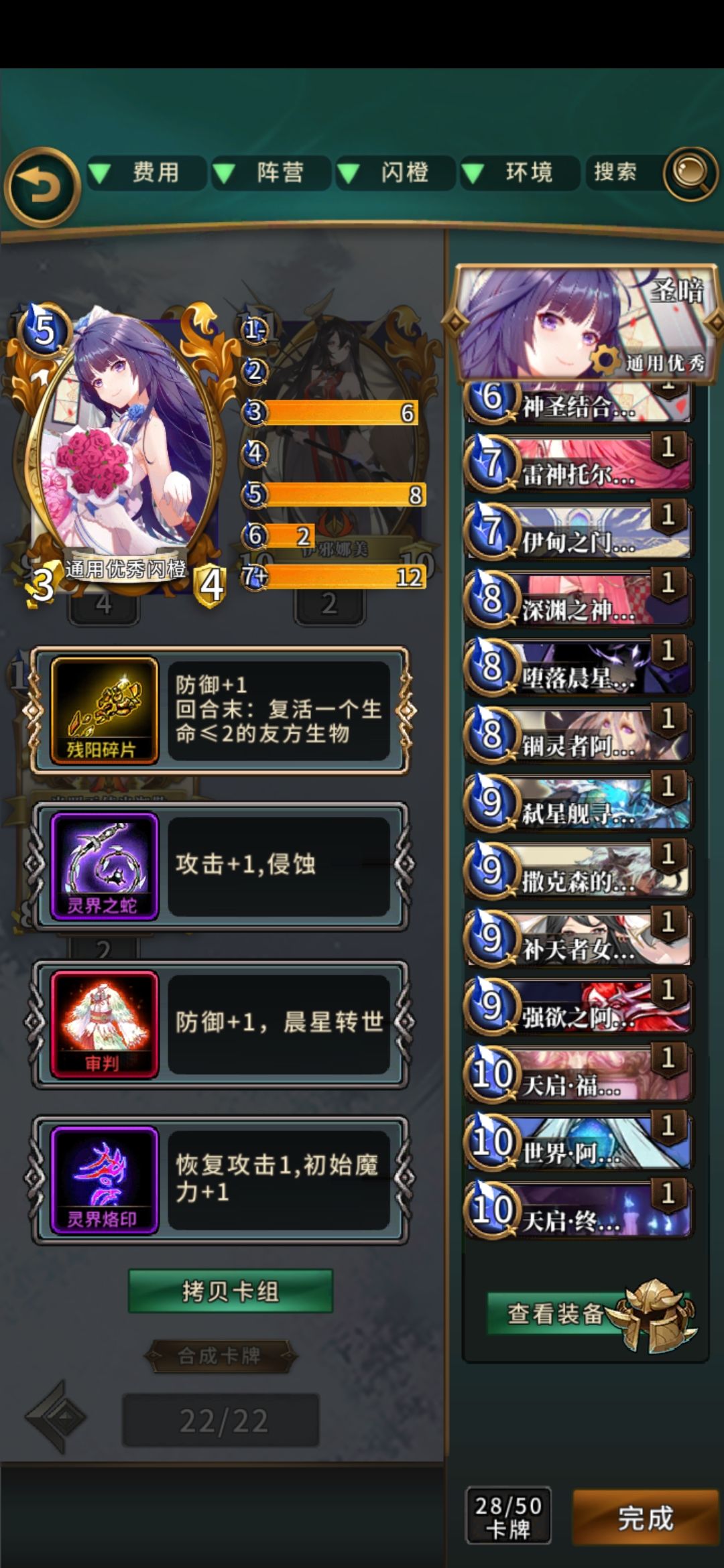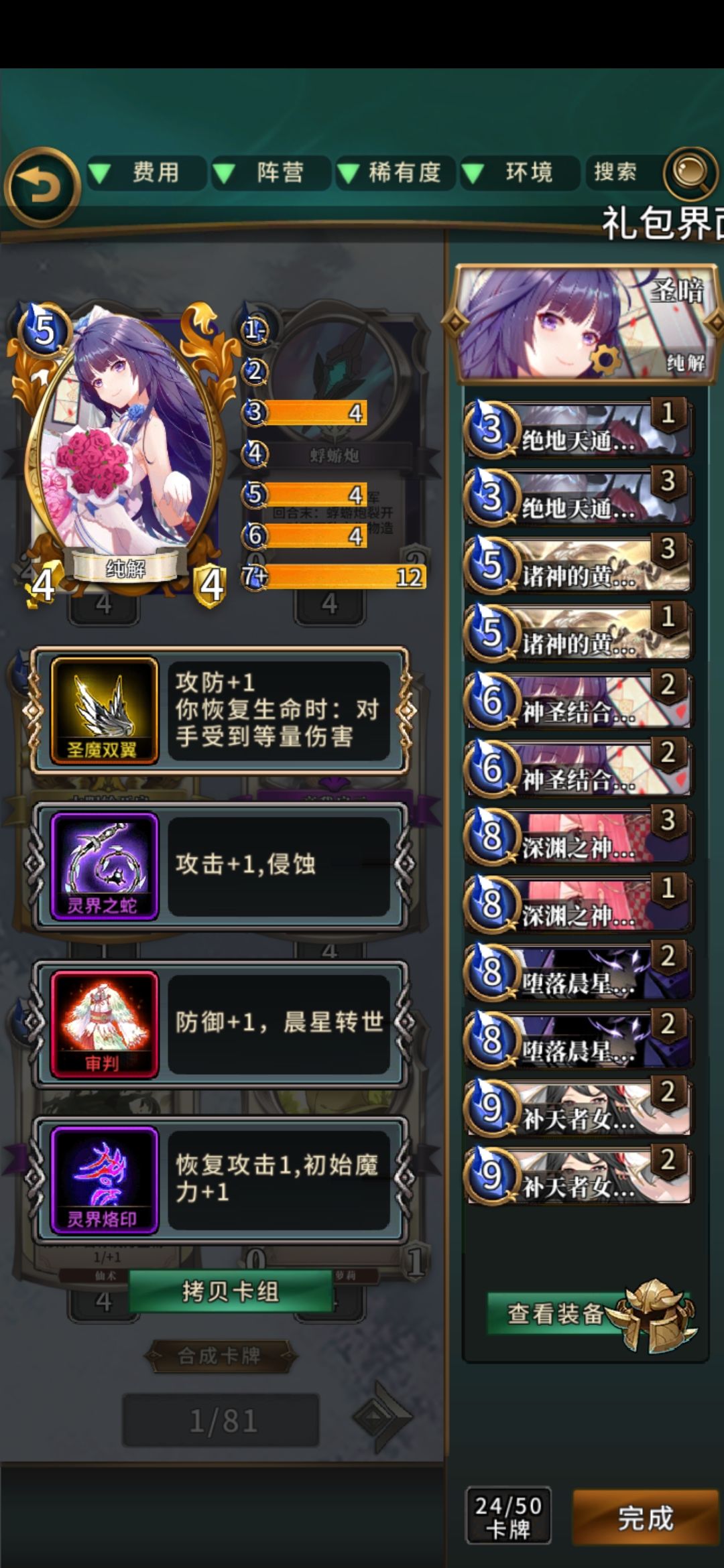 简评:很有中二感的卡组,可惜强度不咋样,资源严重依赖授予,铺场难度很高,嵌套天使卡组强度尚可