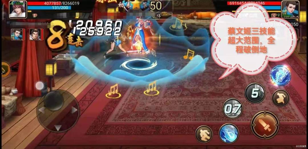 更令人绝望的是,蔡文姬想跑你拿她没一点办法,并且蔡文姬三技能堪称永动机,三技能放完还能回蓝,正常的武将打几个技能下来,如果命中不了对手,基本进入蓝尽技穷的局面,没蓝量的武将就是具备天大的本事也无从施展抱负,这时就像一个顶级步兵,最大的输出能力在于普攻……而蔡文姬就是那一个另类,“你有我有,我有你无”的武将!