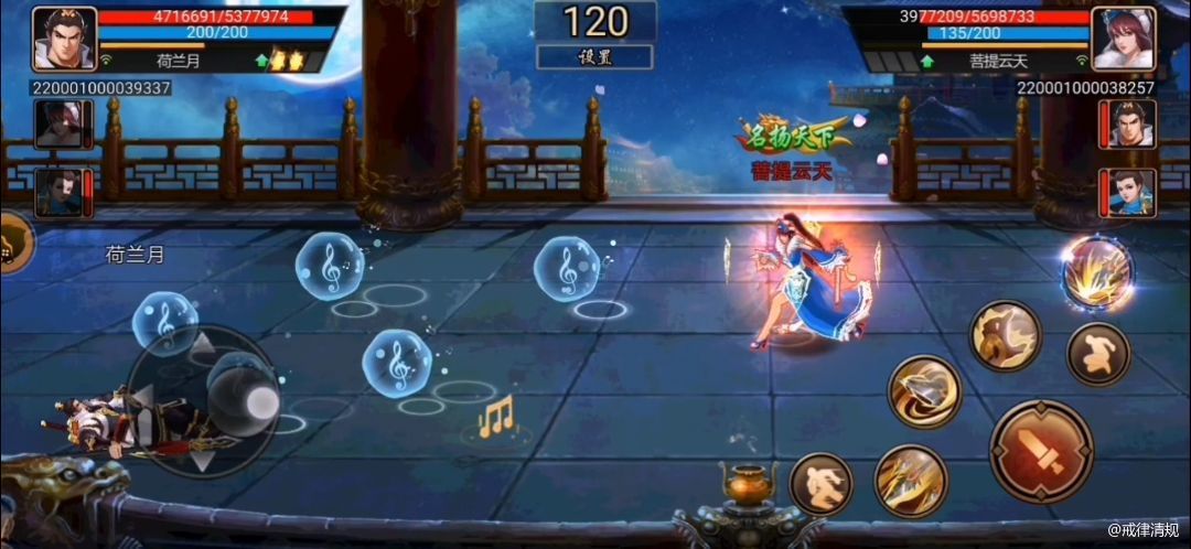⑤音符的拾取:由于每个技能都能抛下增益音符,对战过程里如果不捡岂不可惜,注意每个技能捡音符的时机。这里强调的是技2的音符,它在泡泡放完后站桩抛下的,走位没走对,就被对方反打,建议泡泡将对方包围之后顺势最后跑到远处,不要在对手附近停留。