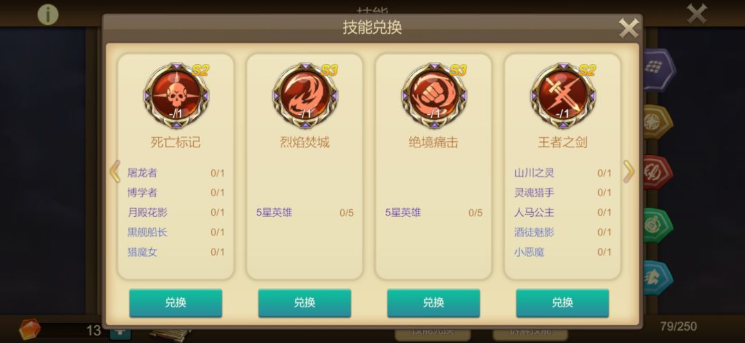 S1-S3五星兑换技能所需材料卡