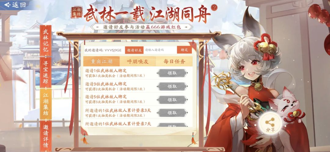 江湖集结福利互填,邀请码VVV5J9GE,互填,填完留言,必回!