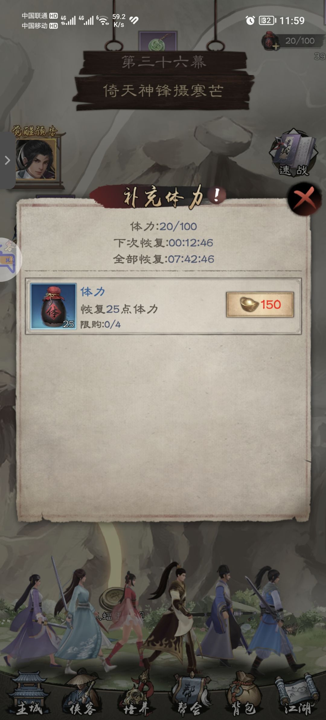 注:每日江湖玩法建议全清体力刷功勋,所获得功勋很可观!