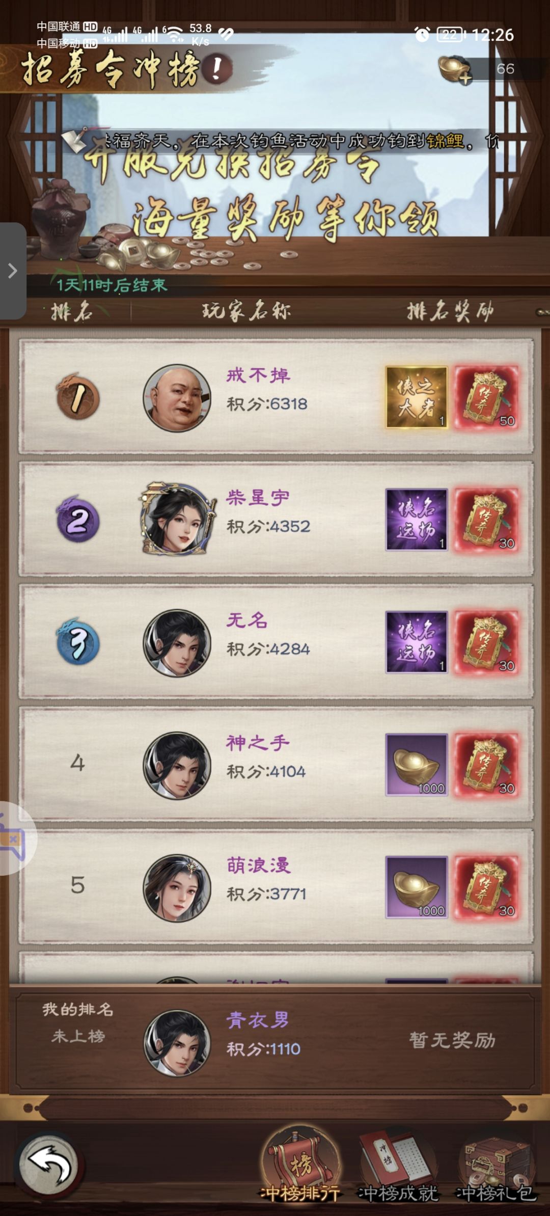 在开服第二天会有招募令冲榜活动,这里小编建议各位侠客留着侠客信物第二天活动开始时抽取!如果有多余元宝的话可以在活动开启是用元宝抽取。(建议在活动开启后按需买冲榜礼包,毕竟活动排名奖励也是非常可观的)。