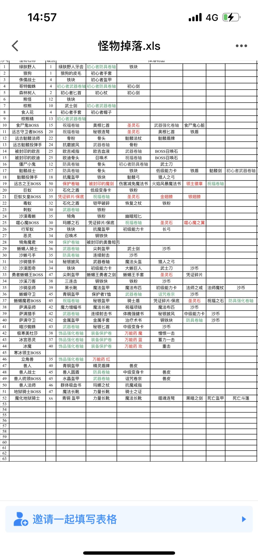 一些装备属性和怪物掉落