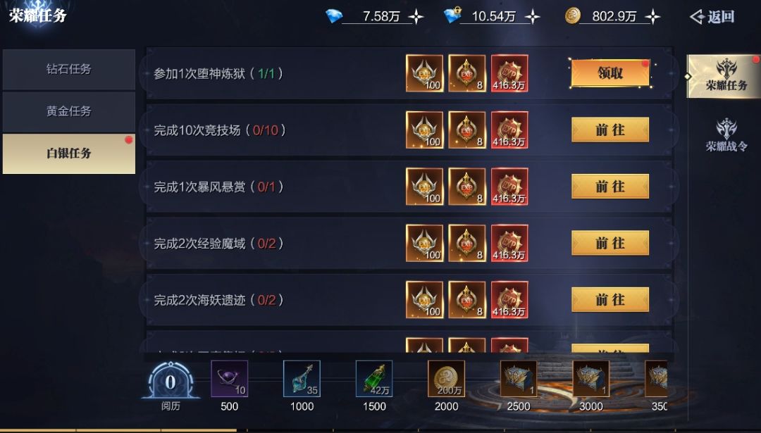 (4)竞技场:竞技场每次挑战除了荣誉、绑钻,还能获得经验值哦,这是比较容易让人忽略的点。大家在完成每日10次挑战后,还可使用绑钻购买挑战次数,在绑钻较为充裕的情况下可以拉满,一点一滴将积累出与其他勇士的等级差距!