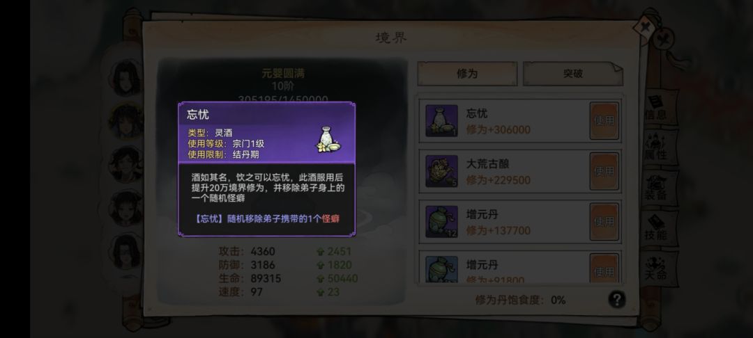 第三:弟子资质影响并不是最大的,关键要看词条天灵根,以及特殊词条的可以直接用,但是具体视个人搭配而定。有怪癖的弟子也别慌,有丹药可以去除。