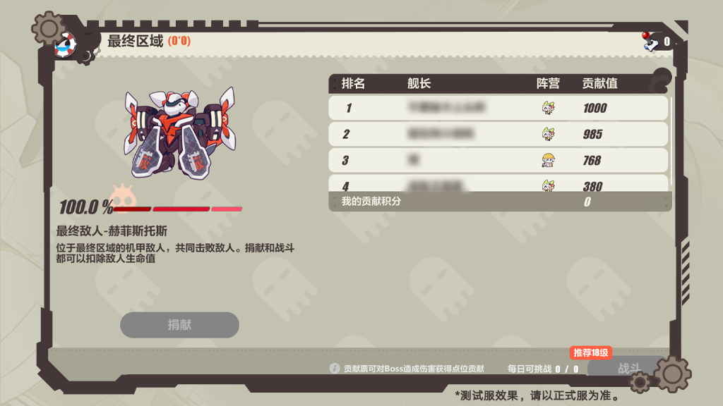 当4个专属区域的探索进度均达到100%后,两个阵营的舰长都将进入最终区域,争夺最后的胜利。当最终区域内的关键建筑进度均提升至100%后,可激活最终强敌挑战。舰长每日可挑战强敌3次,造成的伤害越高,击败强敌所花的时间越短,贡献值就越高。最终对强敌造成更多伤害的阵营将获得胜利。