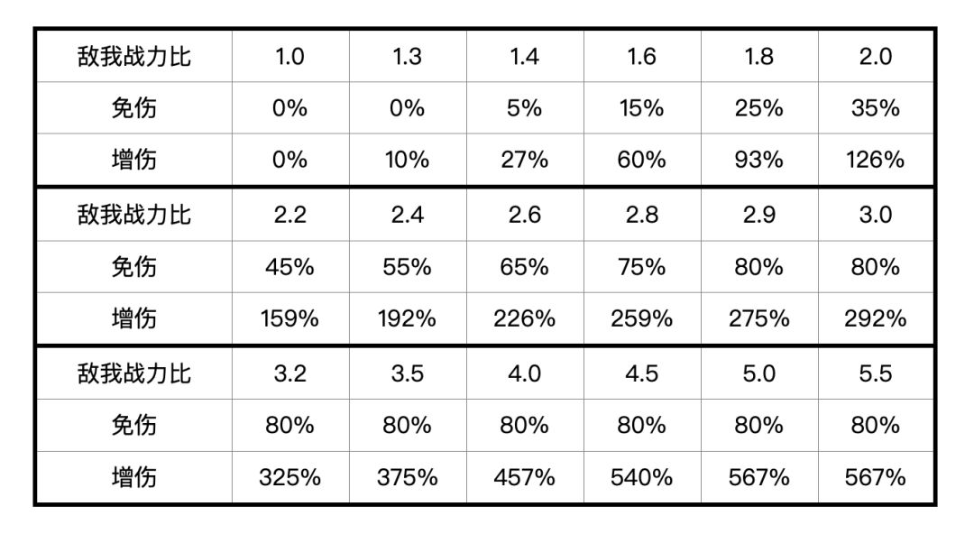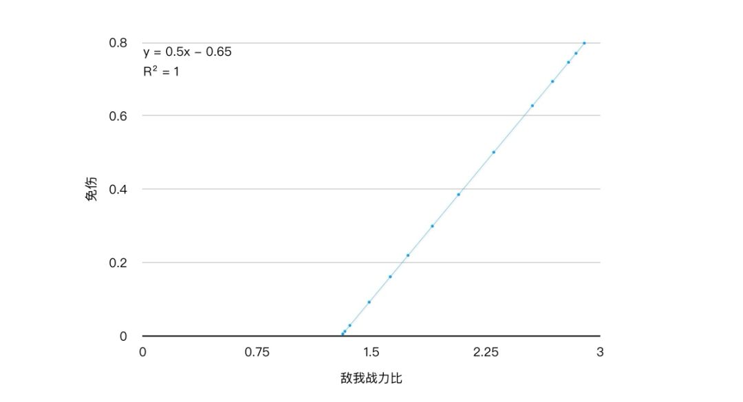 免伤=(0.5×战力比-0.65)×100%