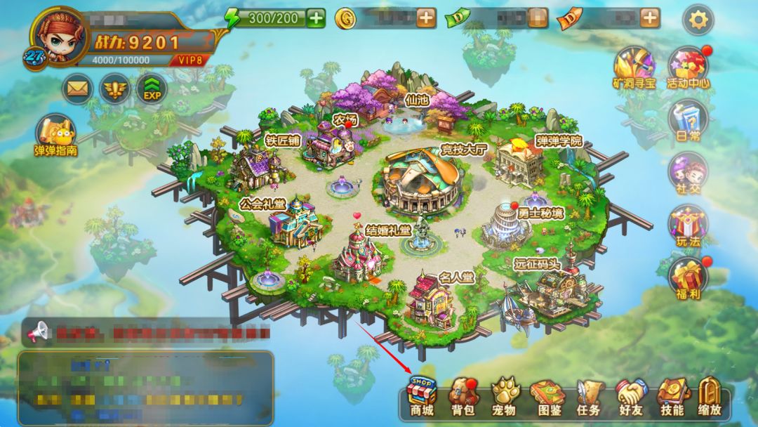 商城系统:弹友们可以在游戏内的物品栏找到商场系统(最下方中间),点击进入后可以购买游戏里面的游戏道具。