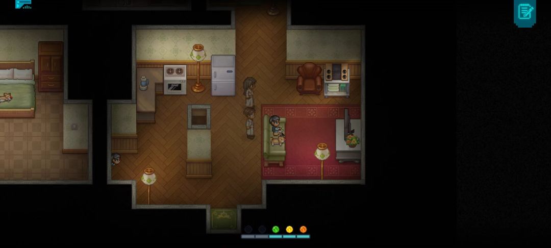 进入主卧室,按空格,把仪器放在中间的桌子上。