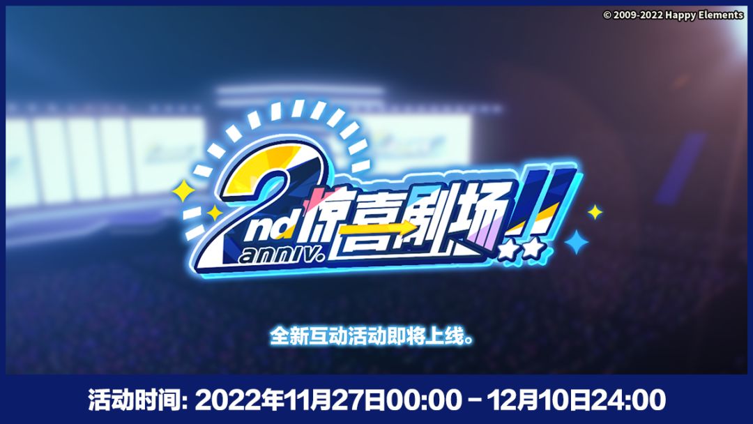 11月27日-12月10日游戏内将举办共14天特定主题的惊喜剧场演出,活动期间,每天12:00、22:00将分别开启两场主题演出。