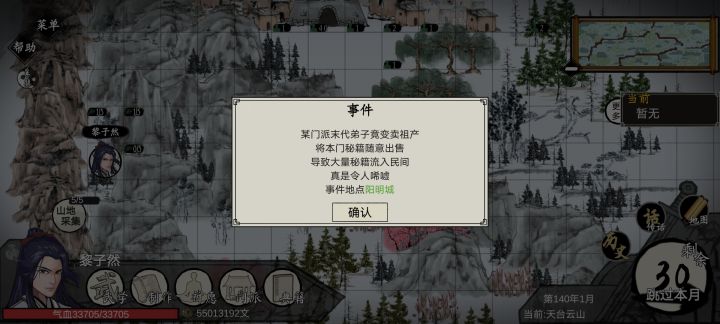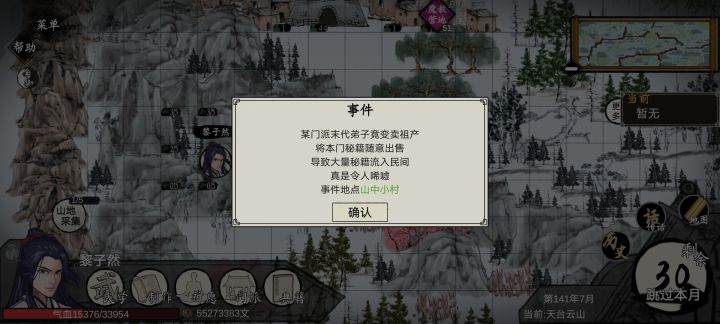 记得注意右下角的城镇的物资进货,这个会把末代宗门贩卖功法的事件刷掉。