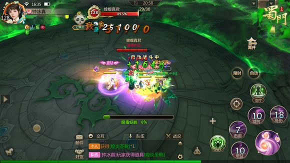 毒效释放:腐毒妖能满100%后真君会进行施法,变身为成强大的蛇妖,变身后攻击力与移动速度都大大提升,重击时能够定身仇恨目标。