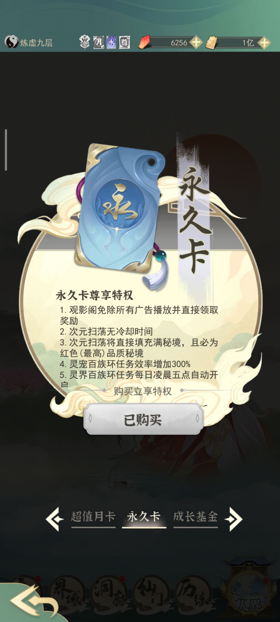 确定好开局的号,跟着主线推图做主线,卡境界了就等下时间,第一天0氪,单永久卡是可以到元婴境界的