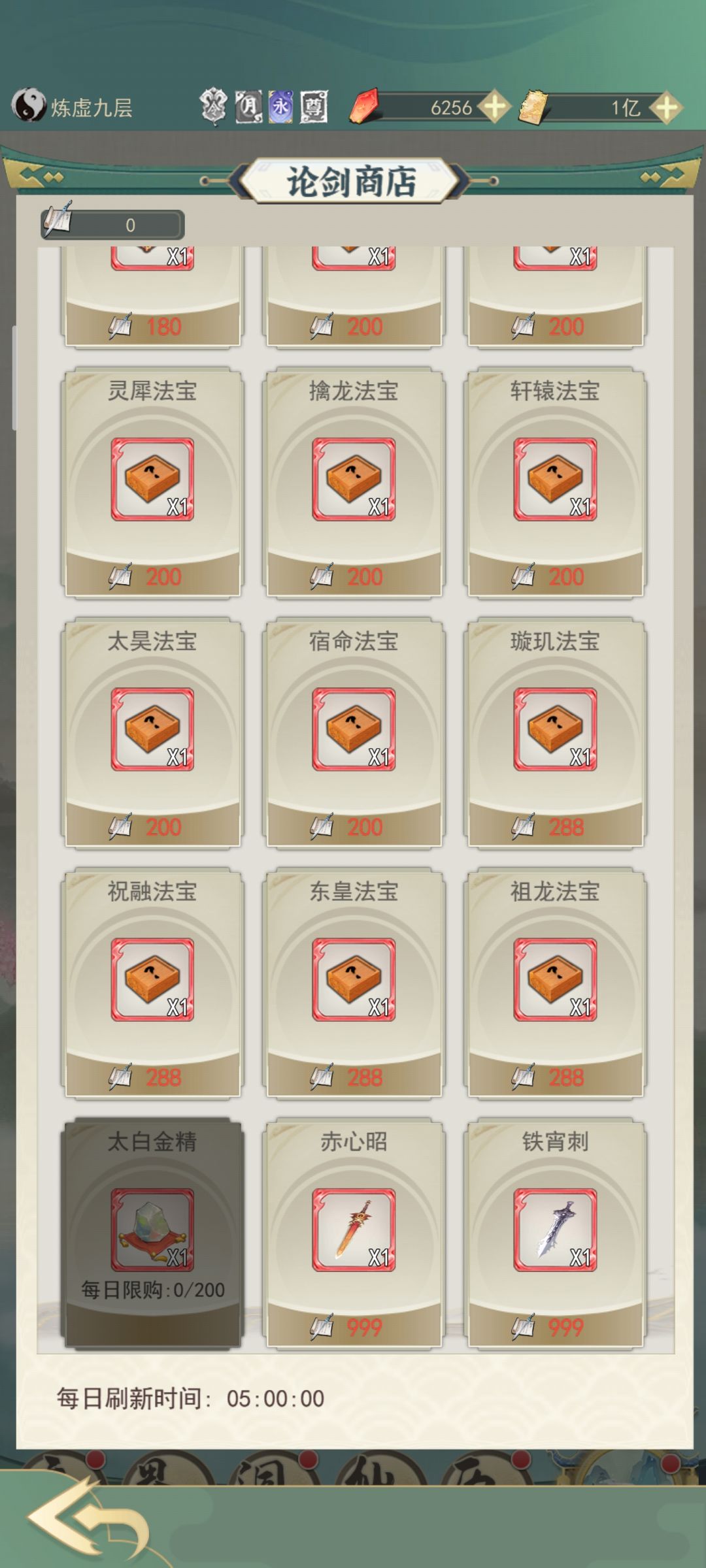 论剑前两天买满次数,尽快到前面奖励比较多,前期打机器人就行了,稳赢。每天晚上9点前结算。论剑商店每天200个太白金精买满,多余的可以买擒龙箱子开加修为的金龟壳。
