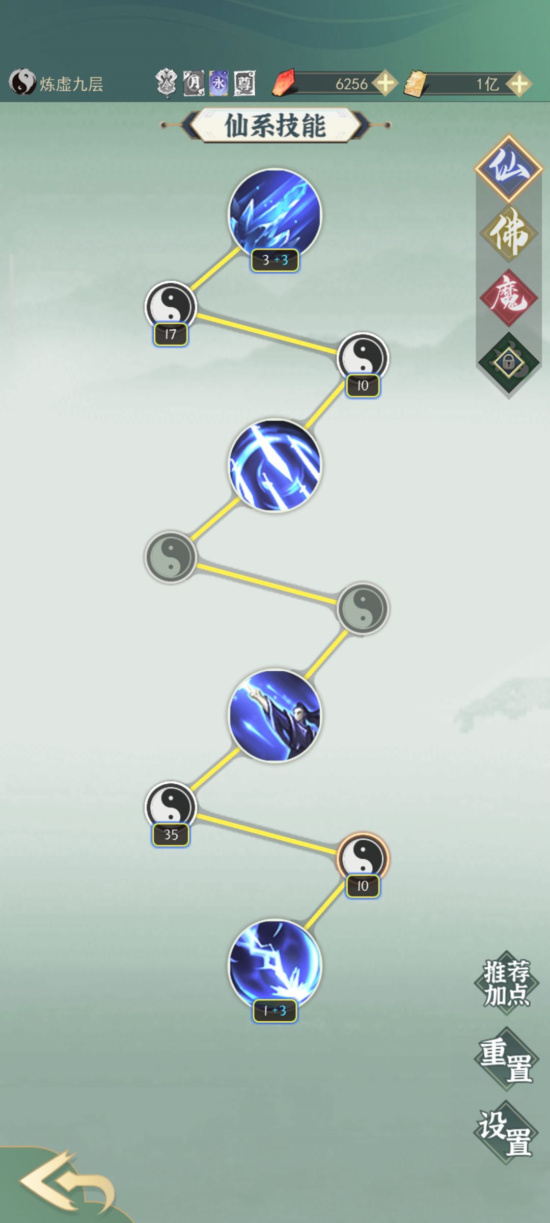 前期仙过渡下,佛开的时候点佛就行,有用到的主动点1级就行,其他点被动,佛点生命,仙点攻击,速度。这游戏最主要的3个属性,速度,攻击,生命