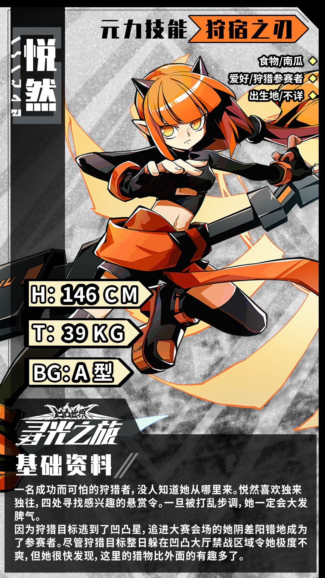 悦然,一名成功而可怕的狩猎者,没人知道她从哪里来。悦然喜欢独来独往,四处寻找感兴趣的悬赏令。一旦被打乱步调,她一定会大发脾气。