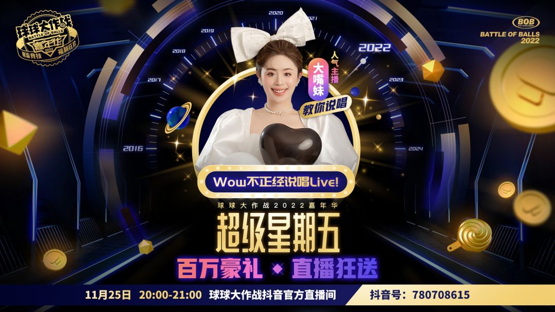 没错!抖音爆火的主播大嘴妹来啦,她的魔性喊麦一定听过!今晚20:00大嘴妹将为球宝们带来Wow不正经说唱 Live,一边说唱一边跟着送节奏狂送豪礼~