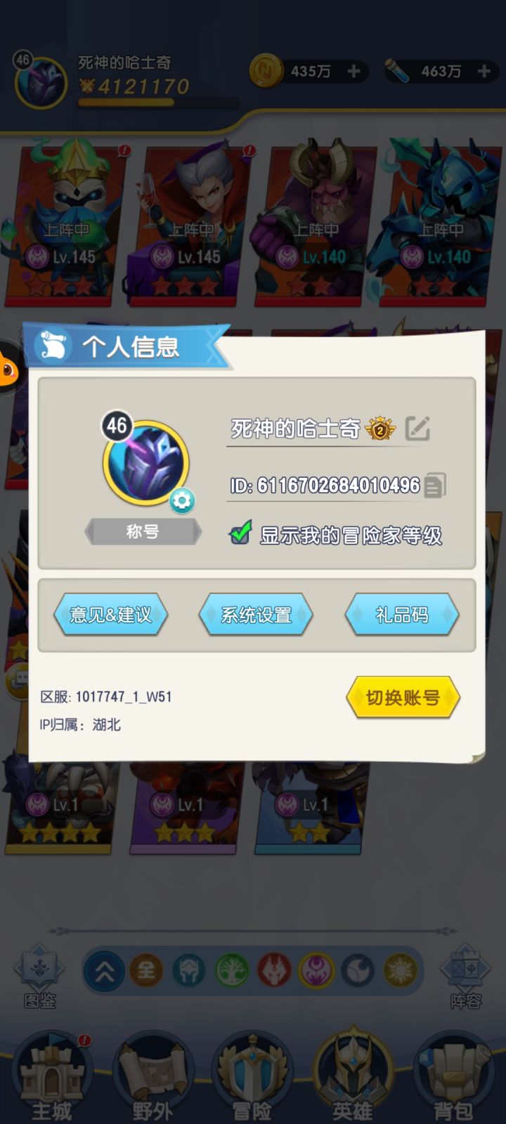 还有一个小小的原因是,额,我抽到恶魔的概率高于其他系,光暗系玩了6天就只抽到过2个暗系,小红帽还是送的😓😓😓很无语,我出光暗的概率不知道为什么这么低,只能这样配了,但是效果还不错。相当于六个同阵营有加成,感觉黑一点的兄弟们有共鸣😅