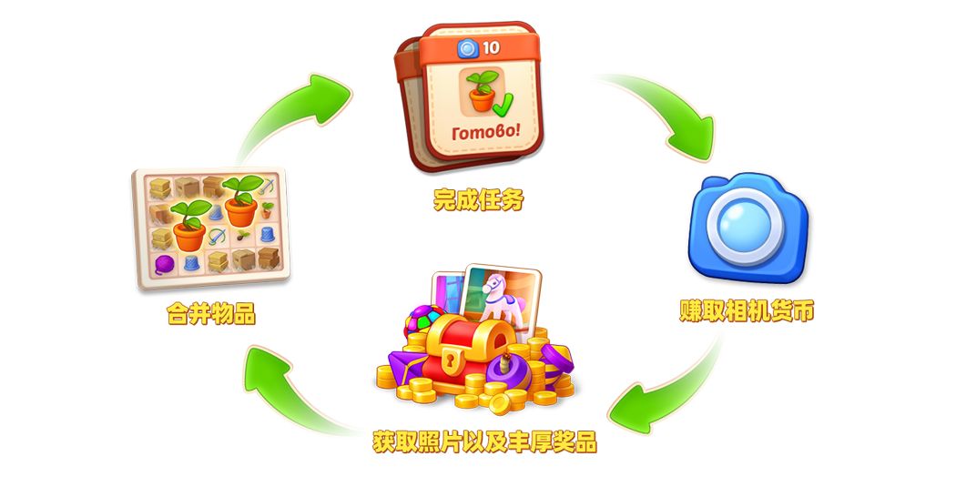 通过不断合成并提交物品收集栏所需物件累积积分,每累积18积分即可解锁一道具奖励或一段照片。