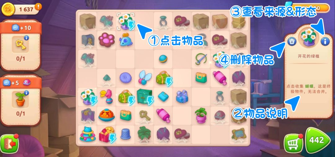 带有能量标识的物品,双击随机生成1个物品;拖动2个相同物品进行合成时,不会消耗能量: