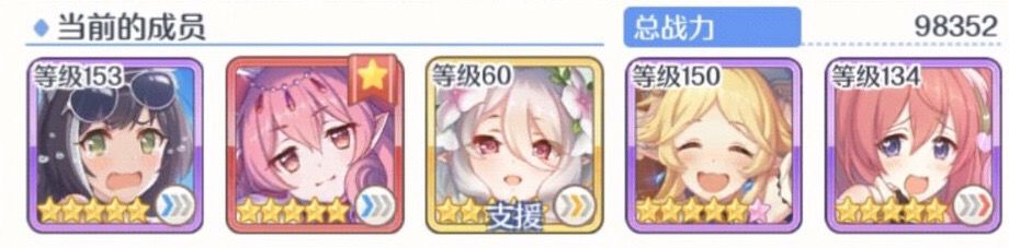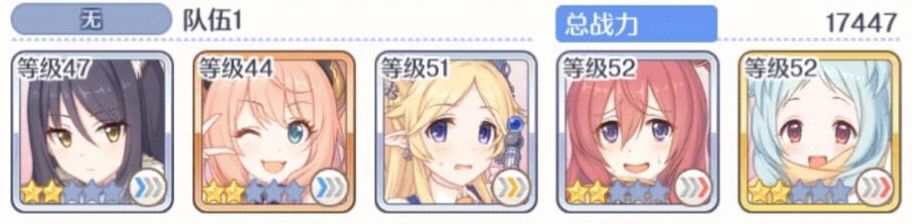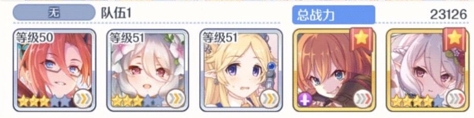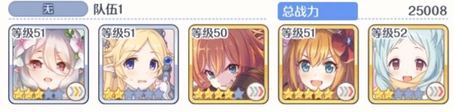 如果你是自建号的极端,一个能用的推图三星都没有你也可以用用这套开服时期的“推图国家队”先用着等以后有了好的三星角色在进行替换