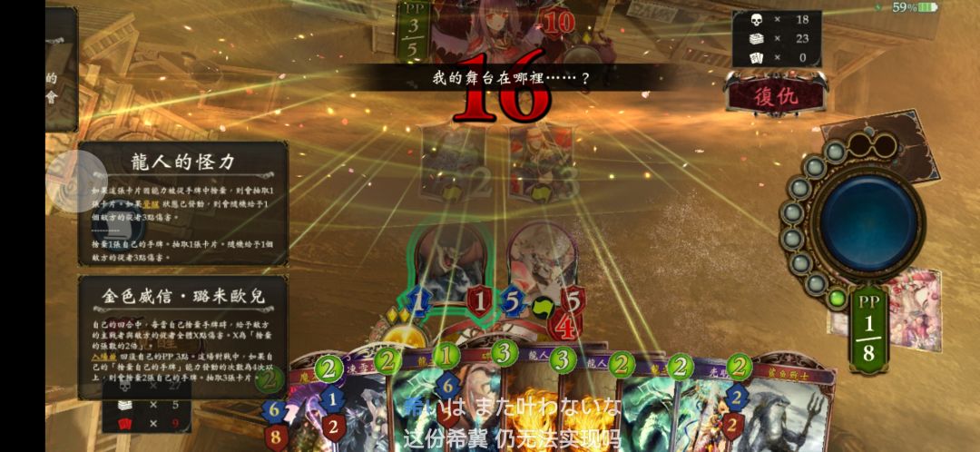 3.打卸牌卡时注意手牌数,金龙斩杀与手牌数息息相关,5-6张就有些少了