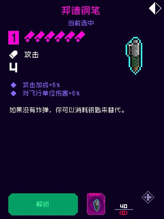 邦德钢笔实现将钥匙当炸弹抛出,视为使用钥匙,便可以触发华丽首饰盒的效果:生成一个无限时间可以抵挡一次伤害的保护罩,于是可以随时随地的使用钥匙,也就可以随时随地的生成保护罩,达成了这样一个转化路径:钥匙当做炸弹扔出→视为使用钥匙→生成保护罩;而分支二的重要道具开锁热线更是可以将10金币当做钥匙使用,达成了这样的一个转化路径:10金币→钥匙当做炸弹扔出→视为使用钥匙→生成保护罩。