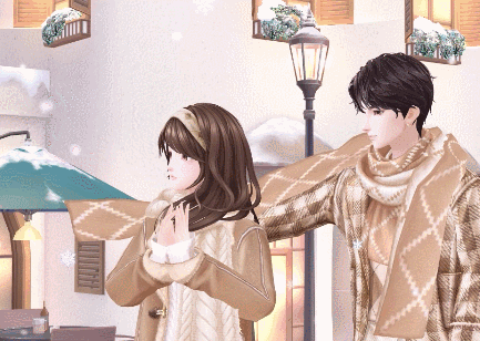 他将围巾披到女孩肩头,