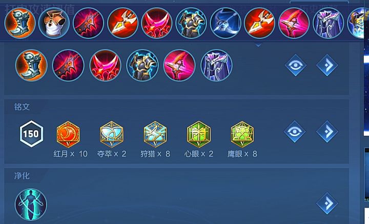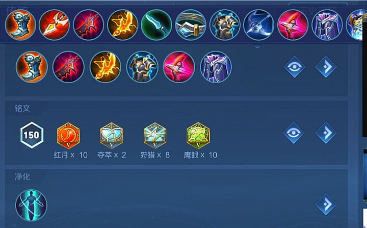 铭文:2夺萃8狩猎,10鹰眼,10红月,