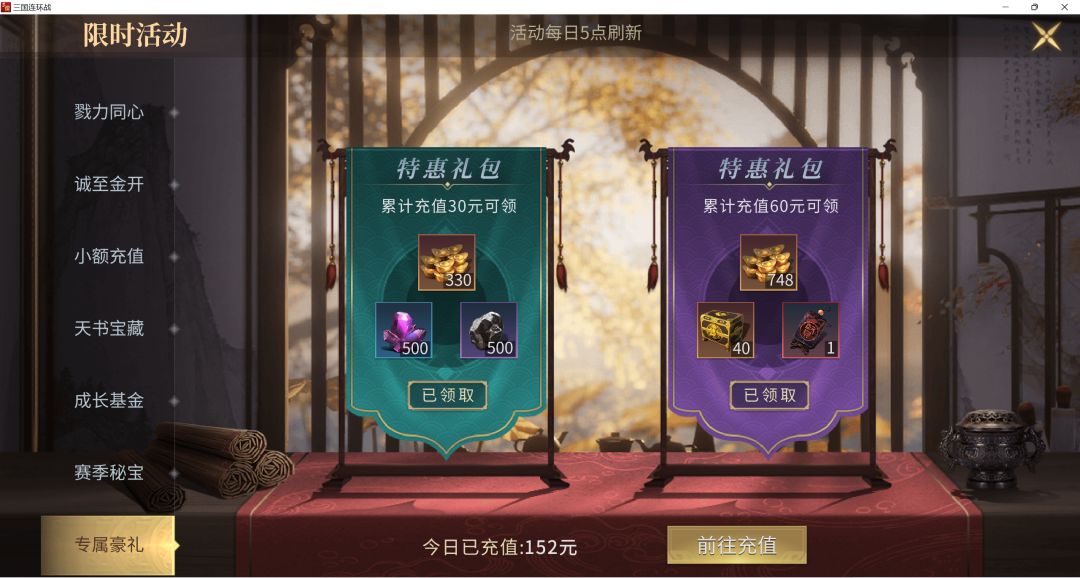 而周中每天充值60元,算上专属豪礼与聚宝盆翻牌等活动,大概可以获得2400元宝左右,也即是4倍。