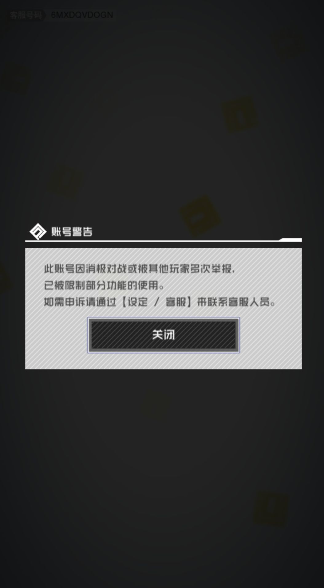 我账号一次没打呢,就被限制功能?? 客服号码:6MXDQVDOGN,忘官方能处理下,谢谢