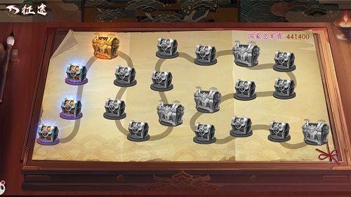 国家征途分为若干个目标节点,达成节点中的国家进度和目标可领取对应的奖励。节点又分为两种类型:小型节点(小宝库)和大型节点(大宝库)。