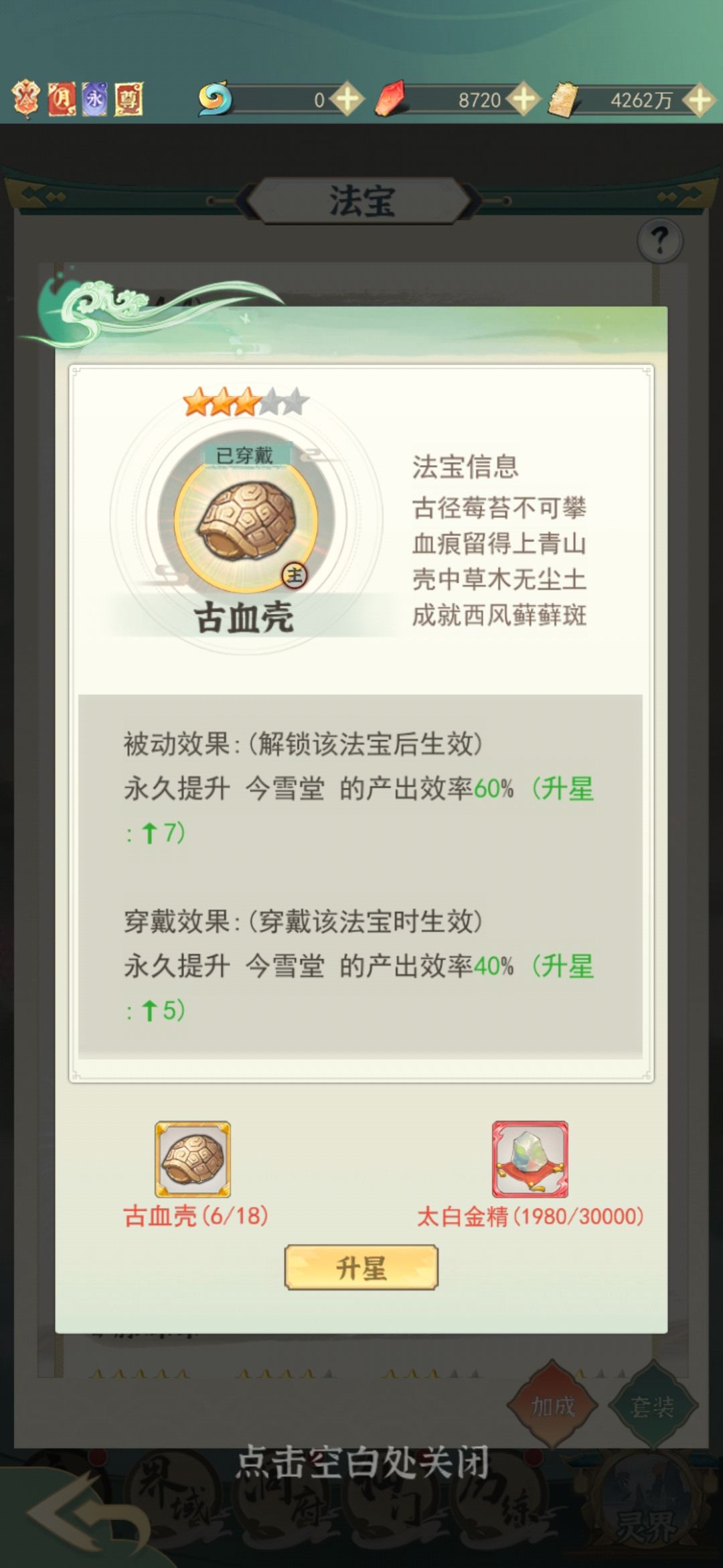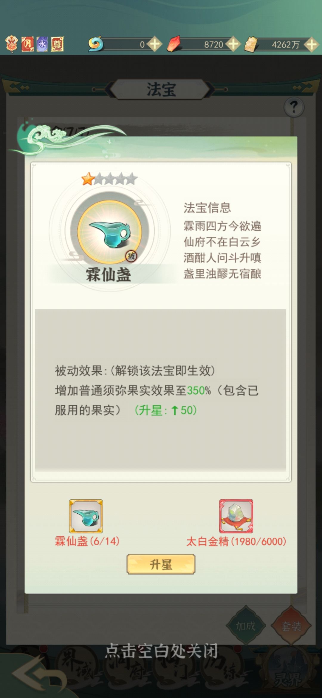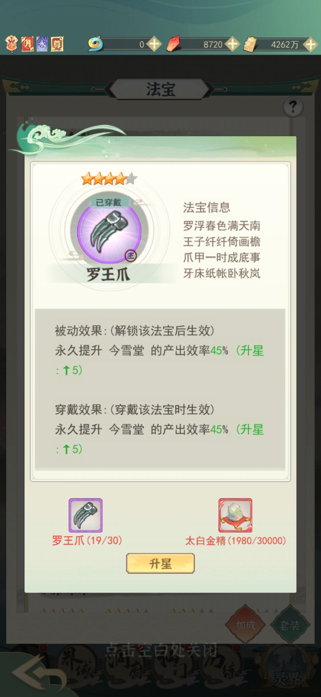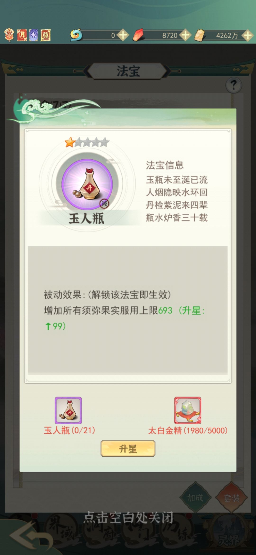 (3)其余法宝也要捡重要的升级,例如紫气速度、斗法奖励等。
