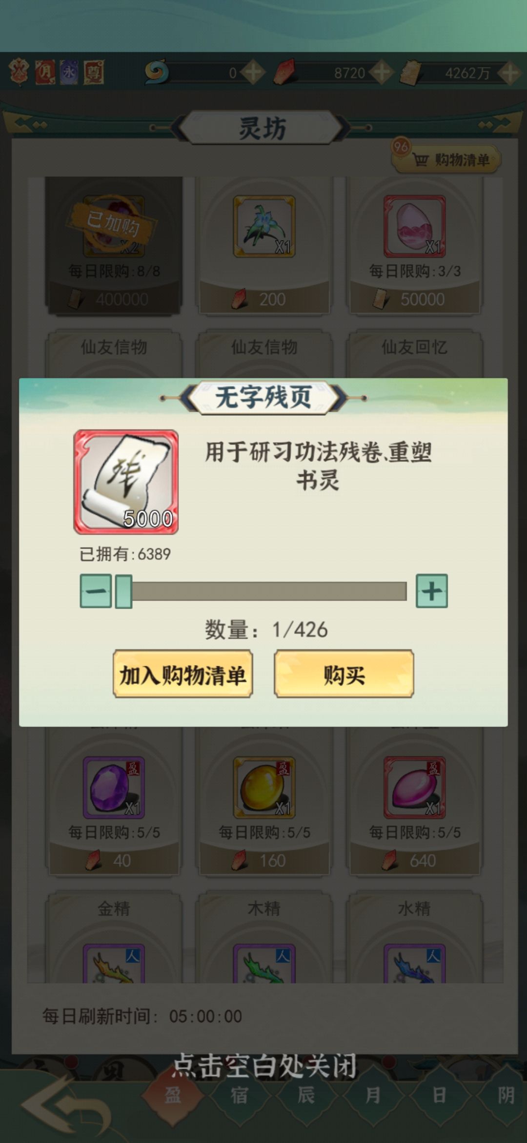 (3)灵根缺的时候再买也不迟,我个人觉得不需要天天买满