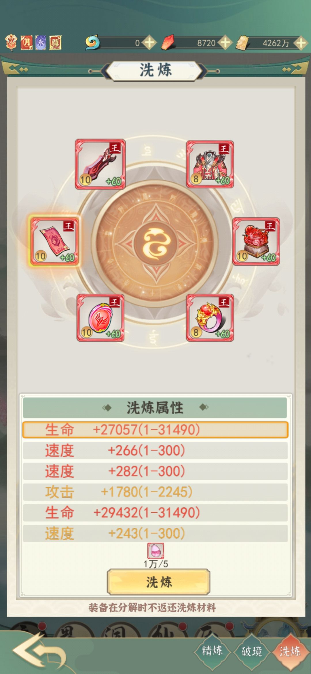 (1)洗炼时优先级速度>攻击>血量,其余的属性不用考虑