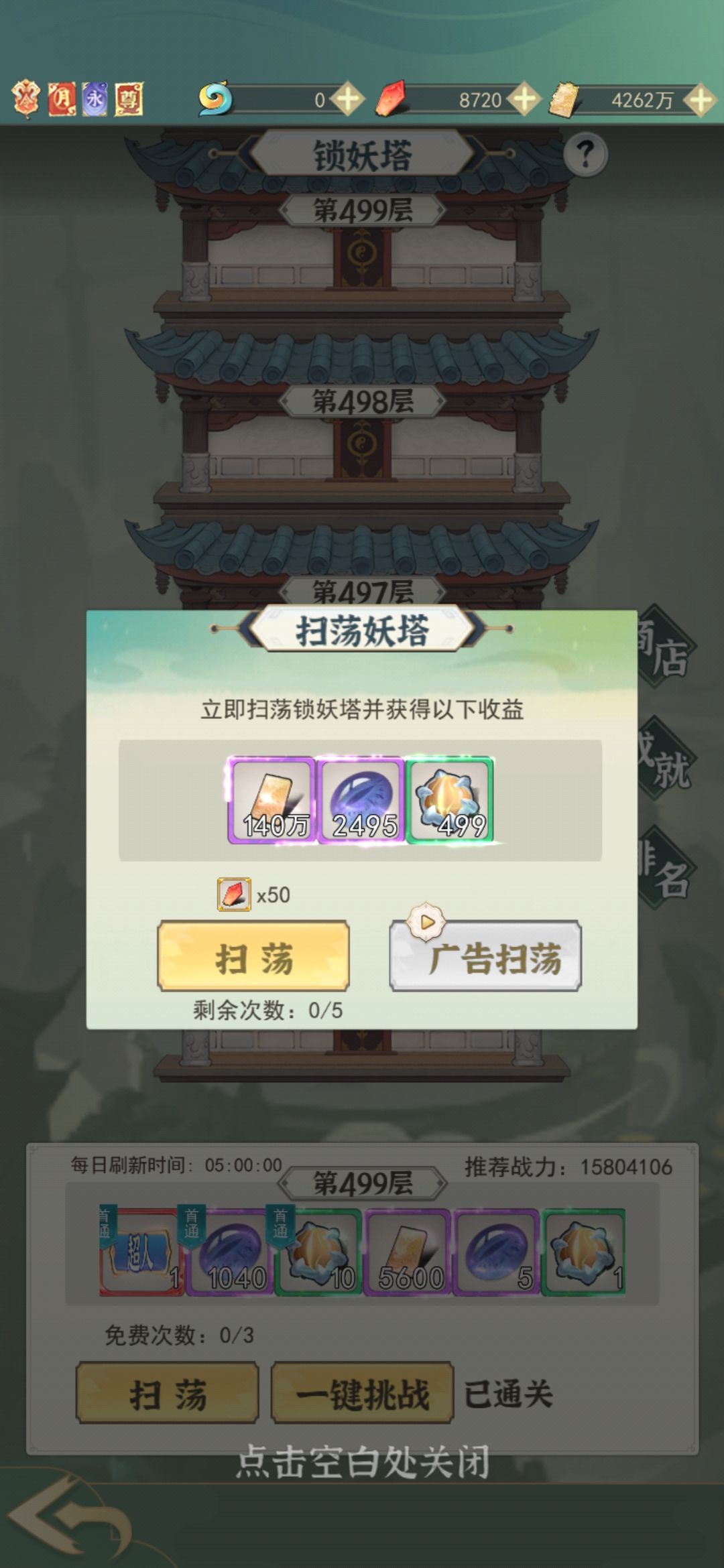 (2)斗法和论剑的商店里都可以换法宝箱子,游戏初期建议全换擒龙和太昊,对应的升级古血壳和罗王爪,并佩戴这两个法宝,提升修为速度。