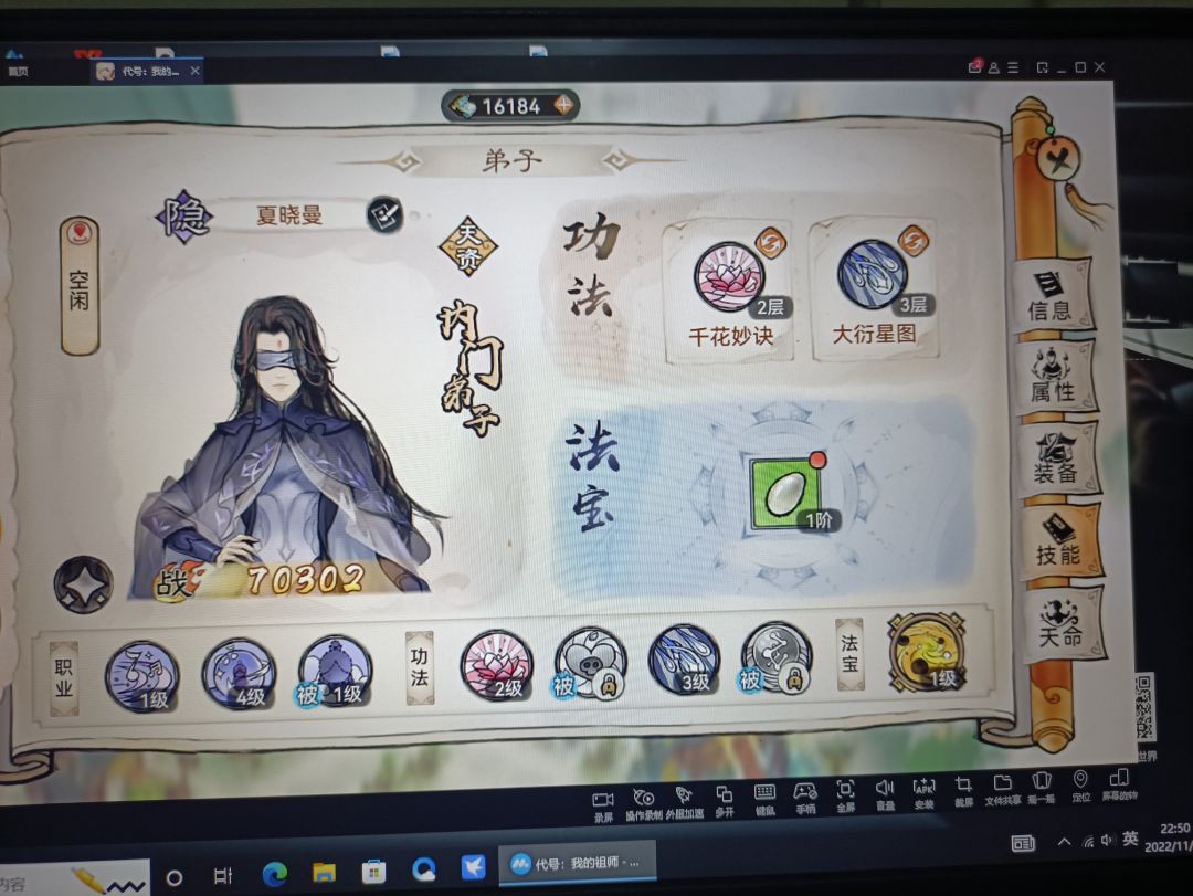 其次要有法宝寒铁,最好红色,不行就橙色。我的整容是2剑1医1隐1和尚。如下图