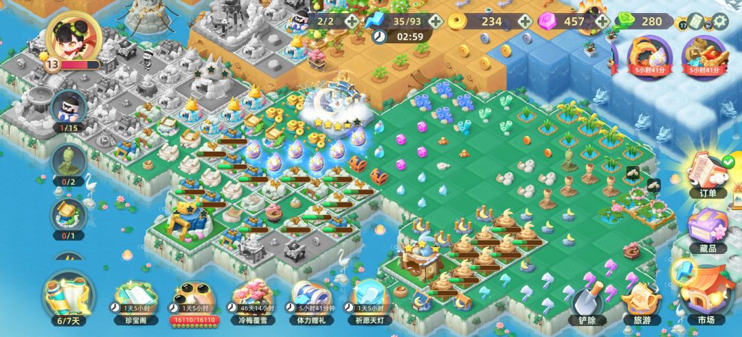 之前在苹果玩过merge dragon,所以对这个类型的游戏很喜欢,再加上开服那天正好是我生日,立刻沉迷,我连每天必玩的页游《庄园时代》和手游《金铲铲》都不玩了(顺便说一句我刚开始玩庄园时代还是17年前读初中的时候,合合岛让我忘记了玩那个)(而且我这两天有银从考试,但是我一直都在玩这个没在复习……好孩子不要学我)